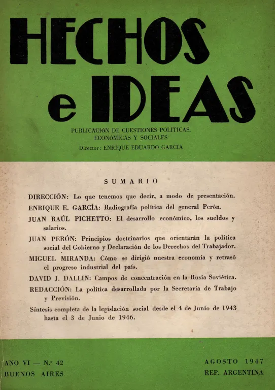 Fruto del esfuerzo conjunto de dos instituciones estatales, que tienen entre sus objetivos la elaboración de estudios acerca de la historia argentina y el rescate de fuentes necesarias para el estudio de la misma - el Instituto Nacional de Investigaciones Históricas “Eva Perón” y el Archivo Histórico de la Provincia de Buenos Aires “Dr. Ricardo Levene” - se presenta esta serie de 4 DVD-ROM que contiene la colección completa, en formato digital, de la revista Hechos e Ideas (2ª etapa). La misma se publicó entre agosto de 1947 y junio-julio de 1955, llegando a un total de 93 números. Dicha revista fue una de las empresas culturales más importantes del primer peronismo que tuvo su origen en la década del 30, más precisamente entre 1935 y 1941, cuando en su 1ª etapa fue expresión del pensamiento de la Unión Cívica Radical.
