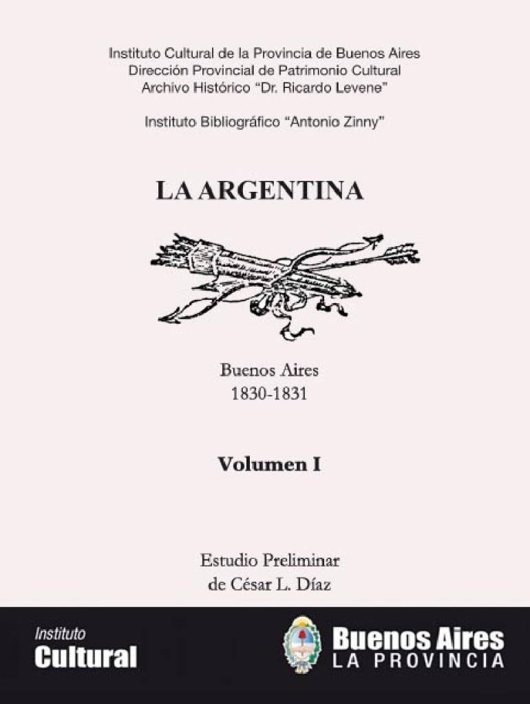Entre el 31 de octubre de 1830 y el 17 de julio de 1831 se editó en Buenos Aires La Argentina, un periódico semanal que abordaba temas femeninos, aunque su redacción fue siempre atribuida a un hombre. La colección completa fue de treinta y cinco números, aunque sólo treinta y dos son los que se pudieron recuperar en esta edición facsimilar. La educación, la moda, la literatura, las costumbres y también la política, desde la óptica federal, fueron las principales cuestiones que trató el periódico. De este modo, el Archivo Histórico da a conocer, en forma conjunta con el Instituto Bibliográfico "Antonio Zinny", otra publicación femenina como ya lo había hecho con La Aljaba, contemporánea de La Argentina, con la cuál además polemizó con frecuencia, y con La Camelia, aparecida en 1852.
