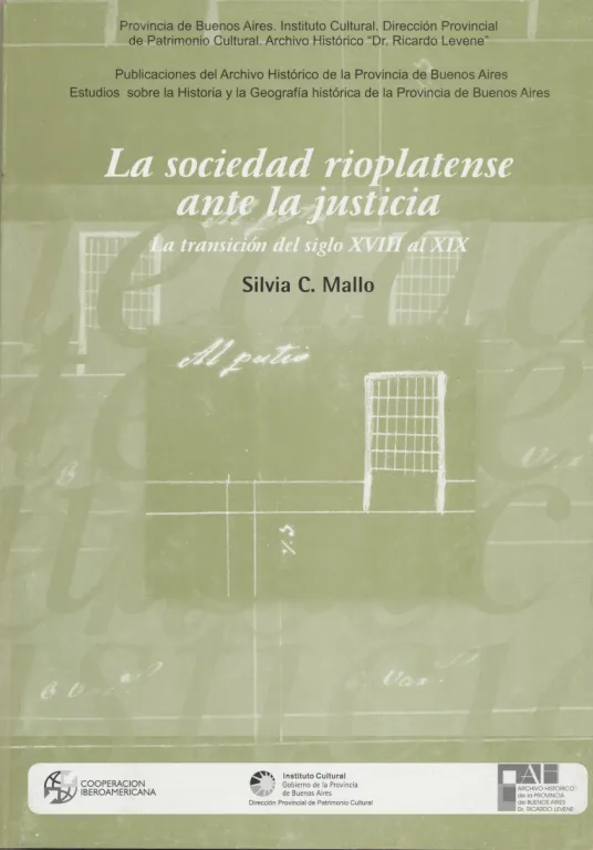 La relación entre acción, poder y Estado es preocupación de las ciencias sociales, junto con el carácter esencial del poder y la institucionalización de formas de dominación y control en la sociedad. La sociedad rioplatense y la justicia fueron indispensables para la construcción de las relaciones sociales, agentes activos y constructivos del "orden" imperante. Entendiendo que los protagonistas presentes en los papeles judiciales no siempre se ubicaron en situaciones inamovibles de dependencia estática o inoperante, este libro se propone descubrir su creatividad como agentes sociales y su participación en la generación de formas de vida y de relación personal, familiar y grupal construidas en la cotidianeidad. La discriminación étnica y social se agrega a la legal, manifestándose ambas en la esfera fiscal, procesal, económica, residencial, de sociabilidad y cultural entre otras.